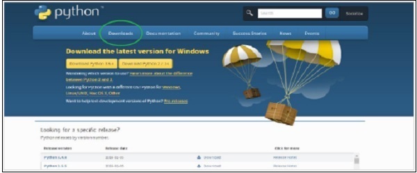 Step 1 - Vá para o site oficial do Python https://www.python.org/, Clique no Downloads e escolha a versão mais recente ou estável de sua escolha.
