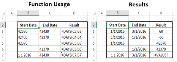 Если оба аргумента даты являются числами, DAYS использует EndDate – StartDate для вычисления количества дней между обеими датами.