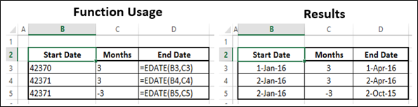 Функция EDATE возвращает серийный номер, который представляет дату, которая является указанным количеством месяцев до или после указанной даты (start_date).