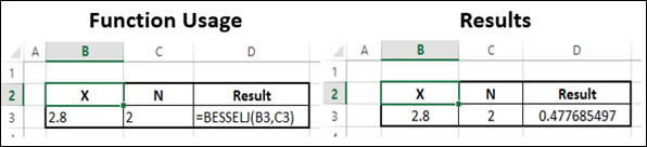 Функция BESSELJ возвращает функцию Бесселя Jn (x).