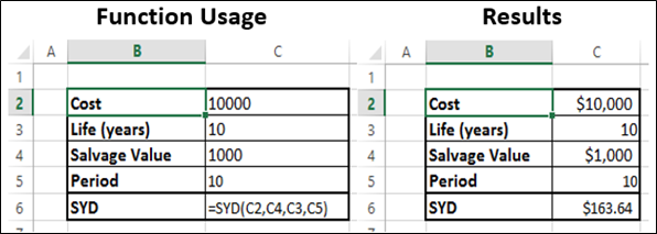 Если указанный срок жизни или указанный для каждого аргумента ≤ 0, SYD возвращает #NUM! ошибка.