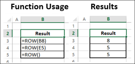 Функция СТРОКА возвращает номер строки ссылки.