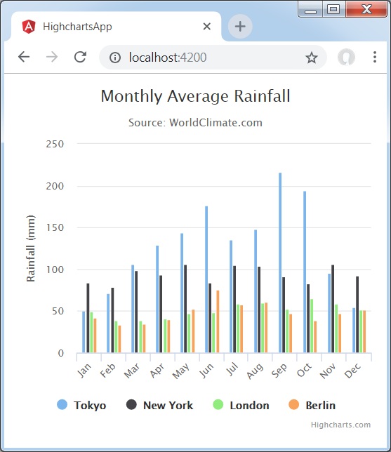 Мы уже видели конфигурации, используемые для рисования диаграммы в главе Синтаксис конфигурации Highcharts . Теперь давайте посмотрим на пример простой столбчатой диаграммы. Мы также разберемся с дополнительной настройкой. Мы изменили атрибут типа в диаграмме.