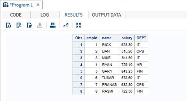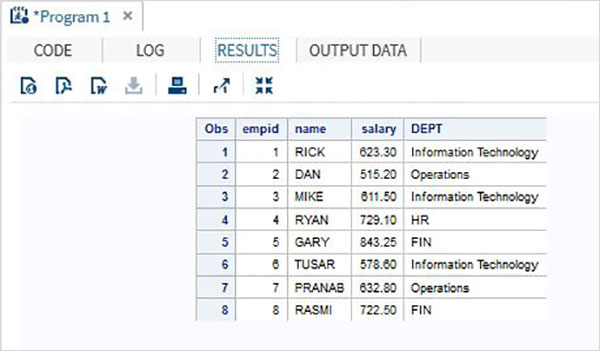 Мы также можем использовать PROC FORMATдля форматирования данных. В приведенном ниже примере мы присваиваем новые значения переменной DEPT, расширяя название отдела.