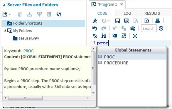 Это очень мощная функция, которая помогает получить правильный синтаксис ключевых слов SAS, а также предоставляет ссылку на документацию по этому ключевому слову.
