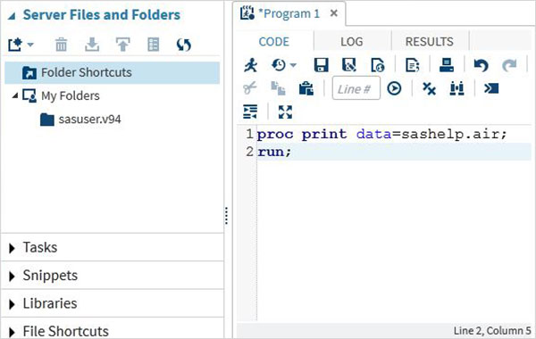 Программы SAS создаются с использованием пользовательского интерфейса, известного как SAS Studio.