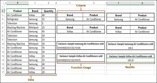 DVAR işlevi, belirlediğiniz koşullarla eşleşen bir liste veya veritabanı sütunundaki sayıları kullanarak bir örneğe dayalı olarak bir popülasyonun varyansını tahmin eder.