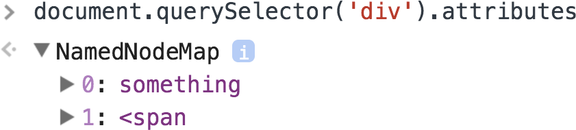 body.innerHTML = '<div something="else"<span>test</span></div>'Now we get an empty attribute that's named
