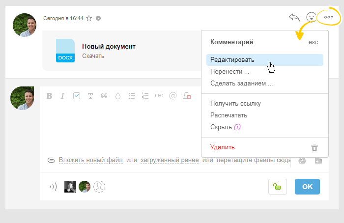 1. Прикрепить файл к задаче или комментарию, при их создании или редактировании