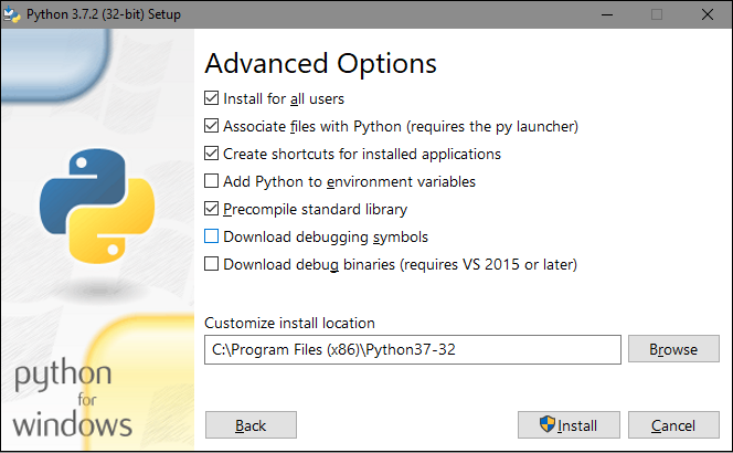 Step 3:Now you will see some advance options, some are checked by deafult. You won't understand them right now so don't make any changes but change the location if you want and then click on Install.